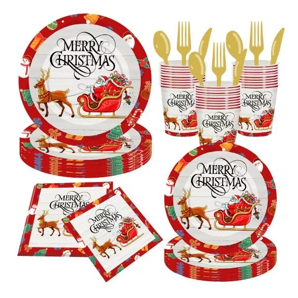 Výběr vánoční jednorázové sady nádobí navrženého speciálně pro Vánoce účinně zmírňuje dřinu čištění po slavnostech. Tyto sady obvykle zahrnují talíře, příbory, lžíce, šálky a ubrousky s klasickými motivy, jako jsou vánoční stromky, sněhové vločky, soby nebo dárky. Tyto sady jsou po jediném použití rovnoměrně stylizované a jednorázové, což eliminuje potřebu rozsáhlého mytí nádobí a umožňuje hostitelům a hostům více soustředit se na užívání prázdnin.