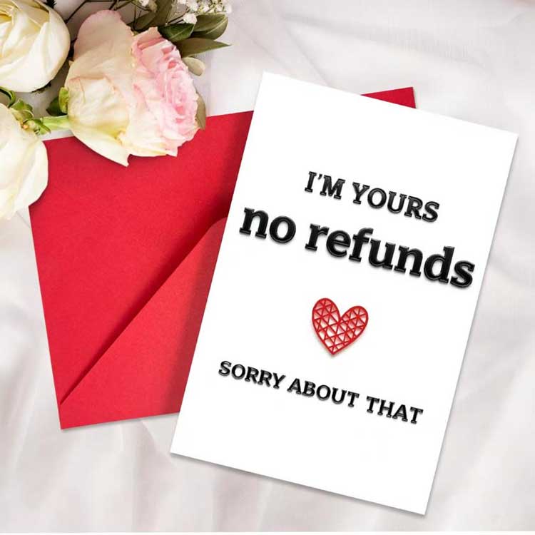Uvnitř je spousta prázdného místa pro ručně psané sladké nic, nebo si zákazníci mohou vybrat z našich předtištěných řádků.